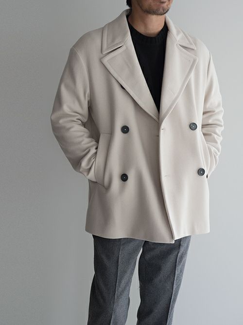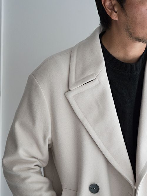 ウール、ナイロン混生地を使用したHevo(イーヴォ)のPコート「TRANI(トラーニ)」。