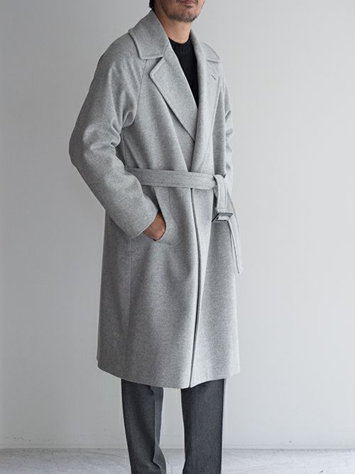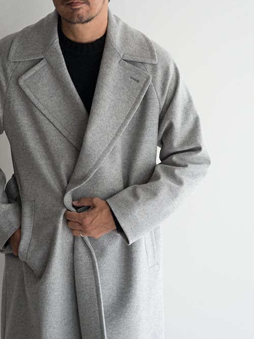 ウール、ナイロン混生地を使用したHevo(イーヴォ)のベルテットコート「BRINDISI(ブリンディジ)」。