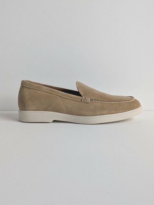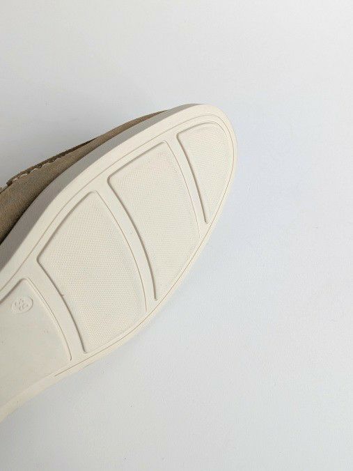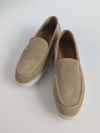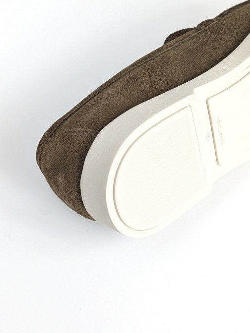 軽快なホワイトソールが魅力的なスリッポン「PIETRASANTA」。カジュアル靴でありながら、アッパーの上質なスエード素材と美しいシルエットが、上品な印象を与えてくれます。