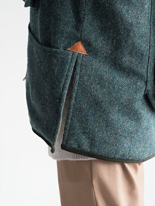 ハンティングベストをモチーフにした、中綿入りツイードベスト。雰囲気のあるネップ感が魅力的なWOOLRICHのファブリックを使用しています。
