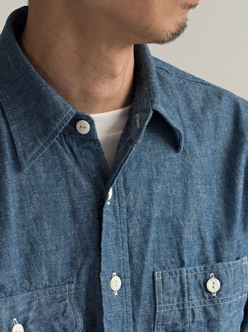 ケネスフィールドの定番アイテム「AUTHENTIC Ⅱ」。経年変化も期待できるシャンブレー素材のワークシャツです。