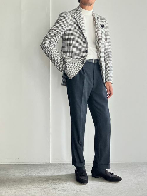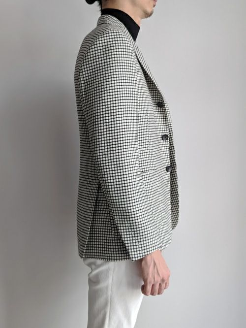 上質なウールを使用した上品なジャケット。着用感は軽く、コーディネートのアクセントになるチェック柄が魅力的な一着です。