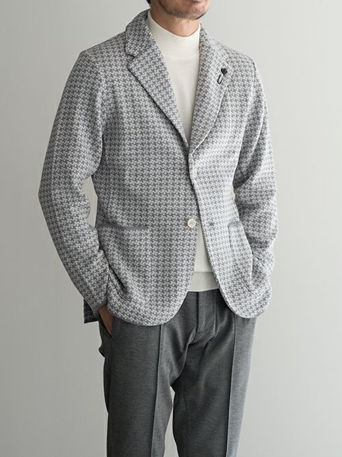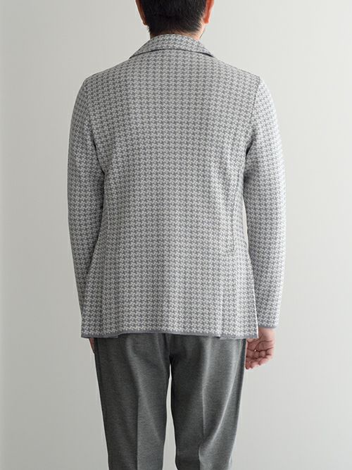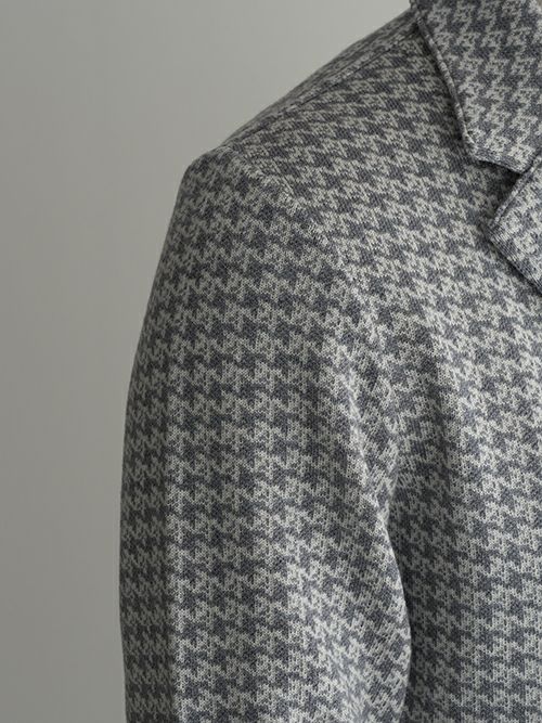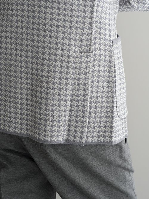上質なウール生地を使用したニットジャケット。着用感は軽く、コーディネートのアクセントになるハウンドトゥース柄が魅力的な一着です。