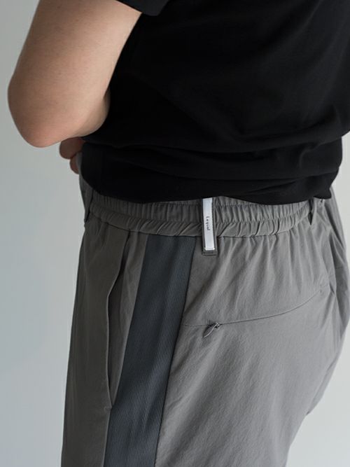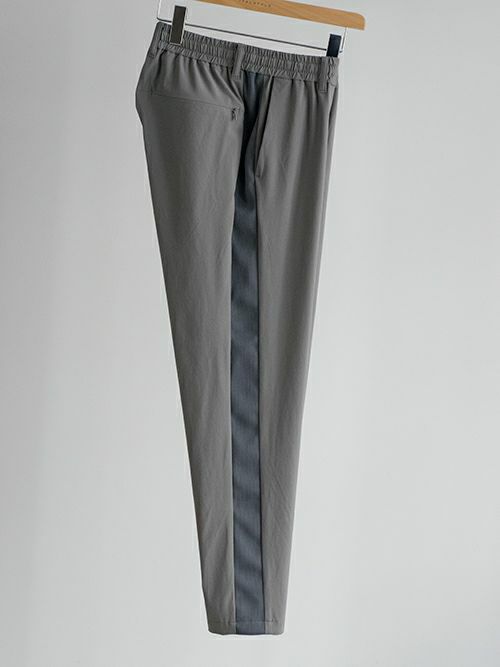特殊な工程で縫製しており、着心地とシルエットに拘ったパンツ。東レのナイロンを使用した4wayストレッチ生地に、サイドのテレコ編みリブをプラスする事で、様々なシーンに対応できる可動域を実現しました。また、多少の雨であれば、水を玉で弾くほどの撥水機能も備えています。