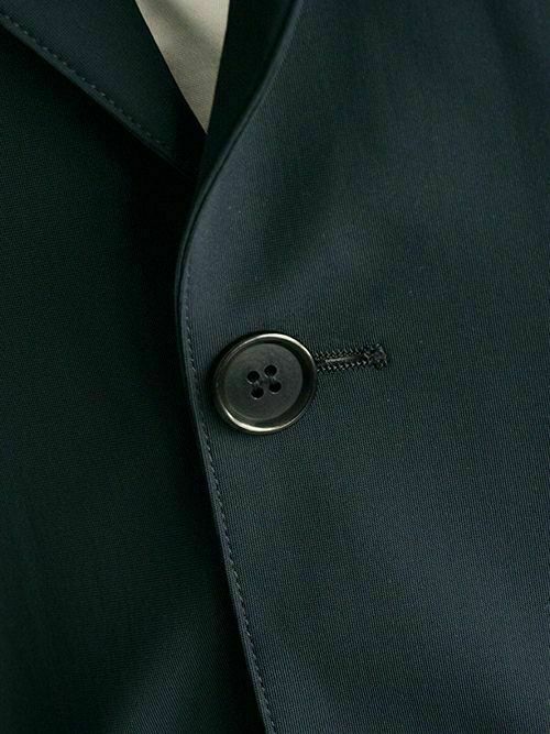 イタリアでは珍しい、ジャージー専業サプライヤーであるEURO JERSEY社の特許取得素材である“SENSITIVE“と名付けられた生地を使用したスーツ。この生地は極細ナイロンとライクラを結束したもの(混率表記はナイロン72%、ポリウレタン28%)で、強い耐久性と物質安定性と回復力にも優れ、また、UVカットで防シワ性と大変機能性に優れた一着です。