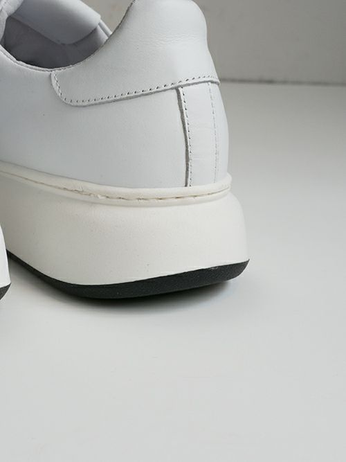 上品でクリーンな印象のレザースニーカー。ボリュームのあるアウトソールが特徴的です。クッション性に優れたインソールは履き心地も良く、シンプルなディテールは様々なスタイリングにフィットする万能な一足です。