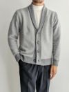 シャツだけでなく、カットソーやハイゲージニットの上に羽織るスタイルもオススメ。カシミヤ混ウールの上品な風合いと、ショールカラーのディテールが魅力的な一着です。