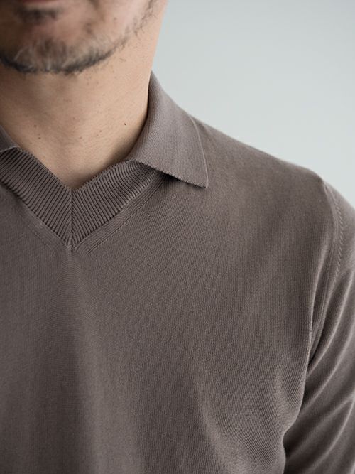 すっきりとしたシルエットのニットポロ。ジャケットのインナーとしても使い勝手が抜群で、洒落感と汎用性を兼ね備えています。毎日着くたくなるような上質なコットン生地の、心地よい肌触りも魅力的な一着。
