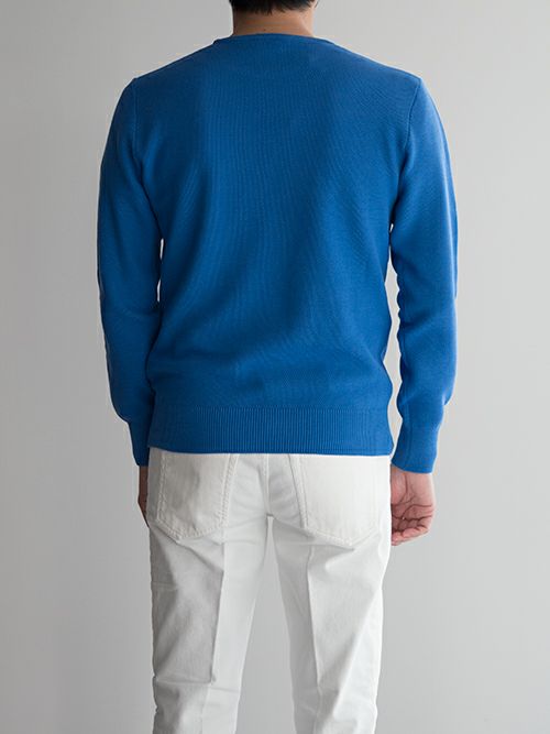 程よくゆとりを持たせながらも、すっきりとした印象は損なわない大人のクルーネックニット。