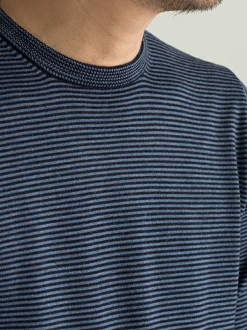 程よくゆとりを持たせながらも、すっきりとした印象は損なわない大人のクルーネックニット。ピッチの細かい上品なボーダー柄で、統一感のあるカラーリングです。