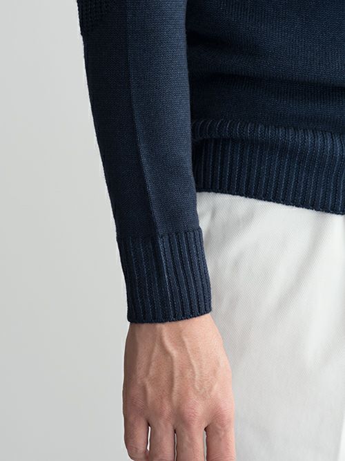 一枚での着用はもちろん、ブルゾンやジャケットのインナーとしても使い勝手の良いニットです。