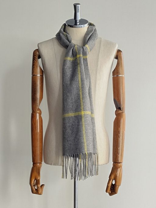 カシミヤ生地でコートやスーツなどの生地も手掛けていますが、カシミヤで一番触れたくなるのがマフラー。ダブルフェイスで両面使用が可能です。GRAYベースにYELLOWが映えるカラーリングは、スタイリングに溶け込みながら存在感を放ちます。定番アイテムこそ高品質なものを選びたくなります。