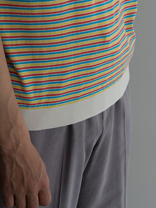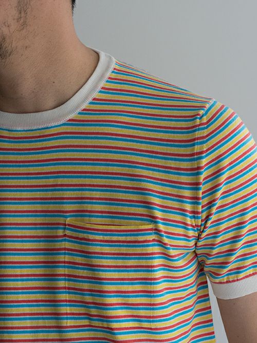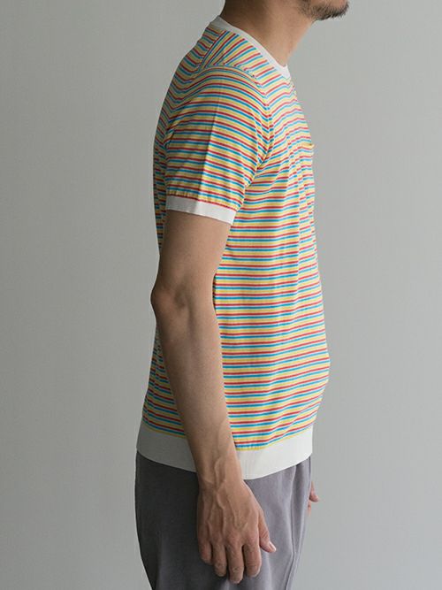 ハイゲージのクルーネックニット。上質でクオリティの高い縫製、そしてセンスの良い配色が際立つボーダー柄が魅力の一着です。
