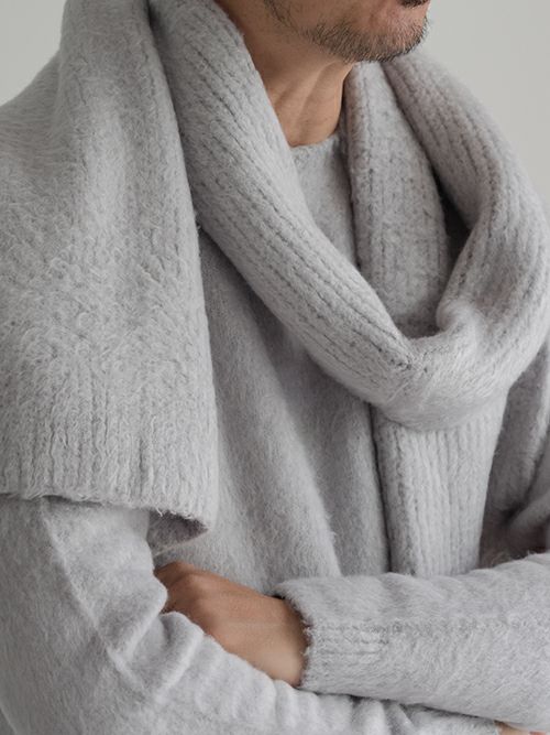 コットンブレンドのニットマフラー。テクスチャード加工を施す事で、ふっくらとした温かみのある仕上がりです。