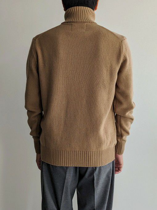 秋冬に重宝するタートルネックのミドルゲージニット。上質なウールの質感が落ち着いた大人のこなれを演出します。