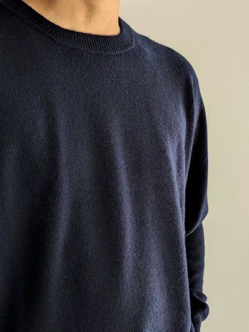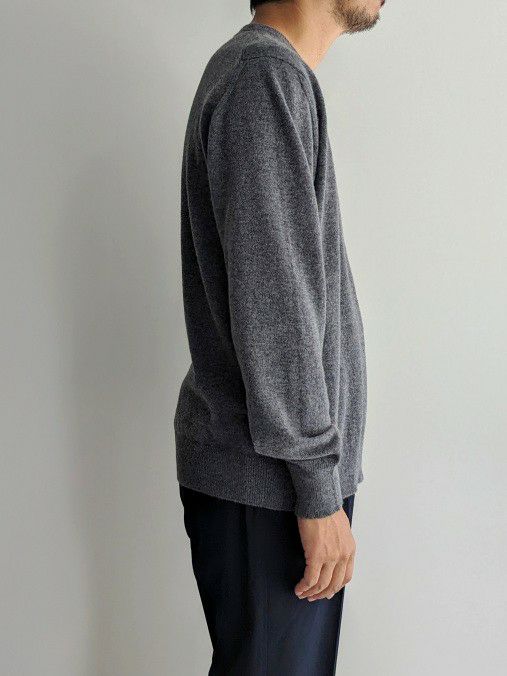 秋冬に重宝するクルーネックニット。上質なカシミヤの質感が、高級感と落ち着いた大人のこなれを演出します。