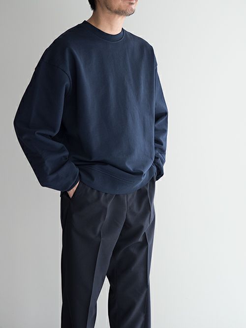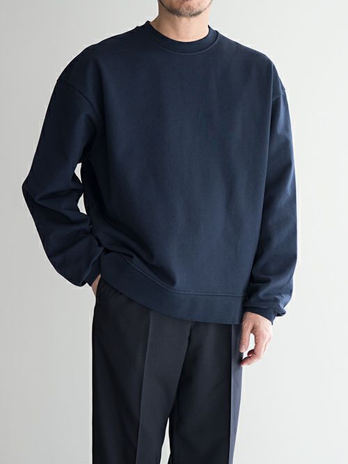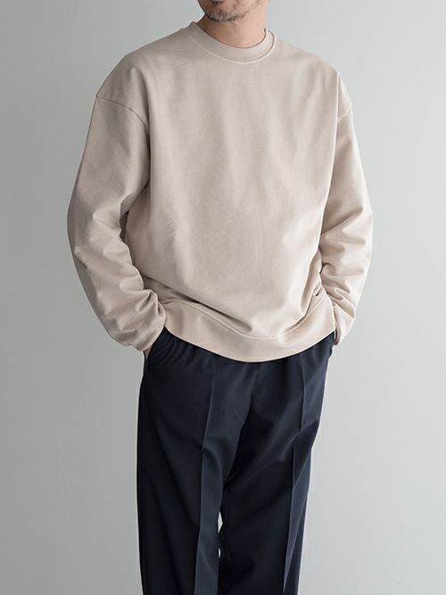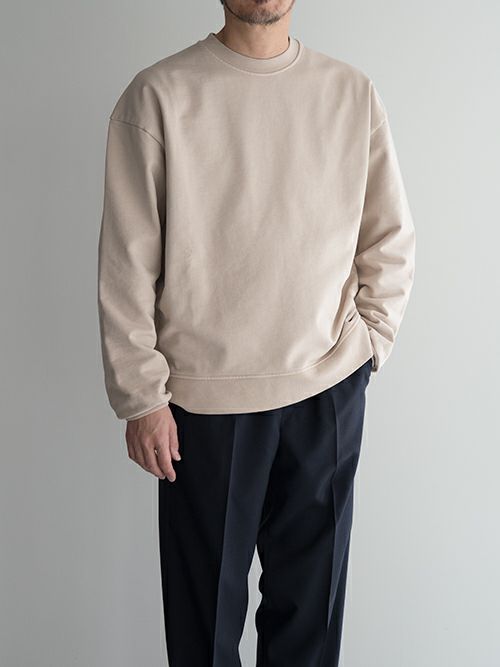 通年に渡り重宝するクルーネックのスウェット。上質なコットンを使用しており、高級感と落ち着いた大人のこなれを演出します。