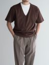深めのブイネックが印象的なカットソー。上質なコットンを使用しており、高級感と落ち着いた大人のこなれを演出します。