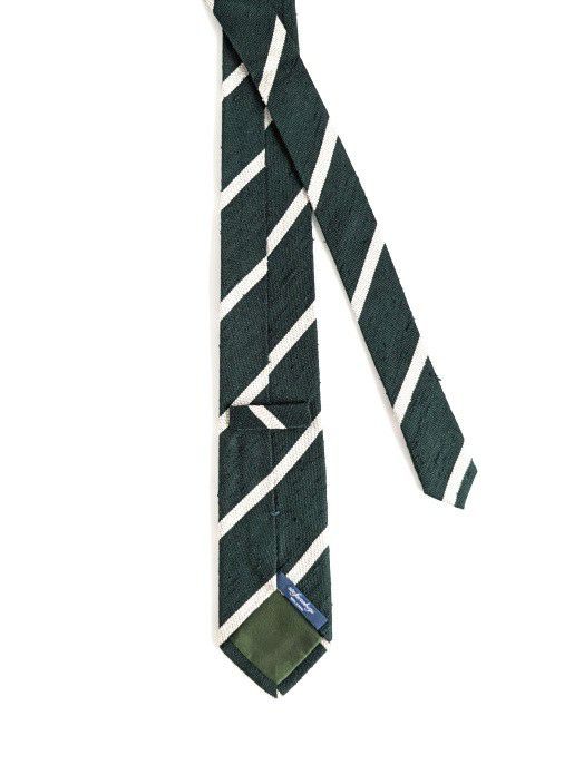 上質なシルク素材を使用したストライプ柄ネクタイ。春夏に適した軽やかな表情が、Vゾーンに清涼感を生み出す1本です。