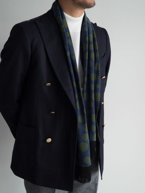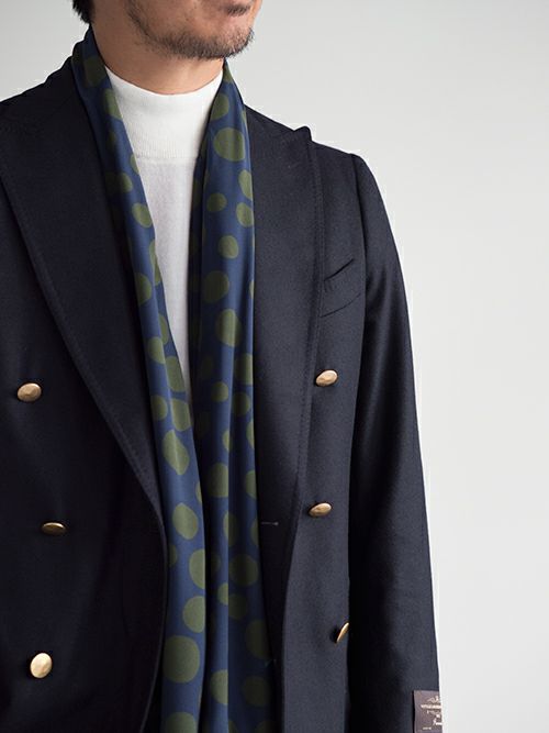 ステファノカウ ドット柄シルクストール NAVY