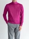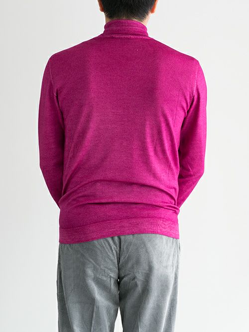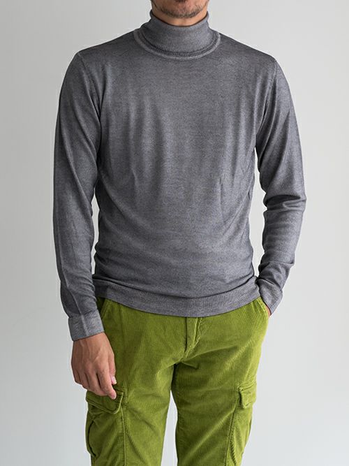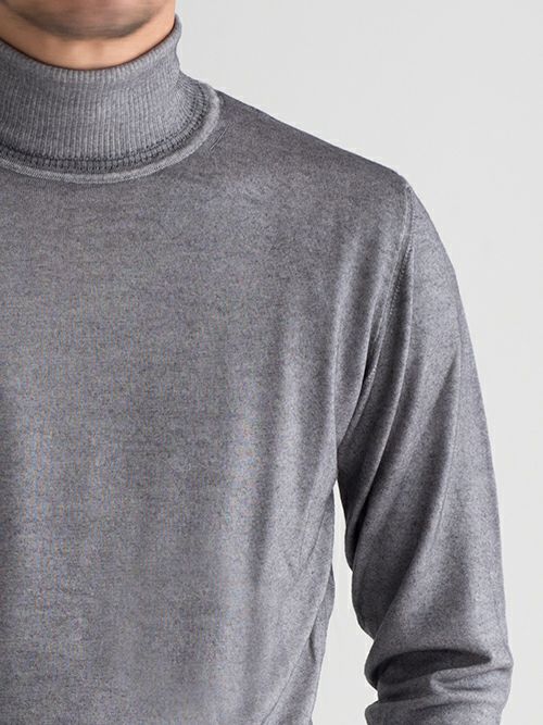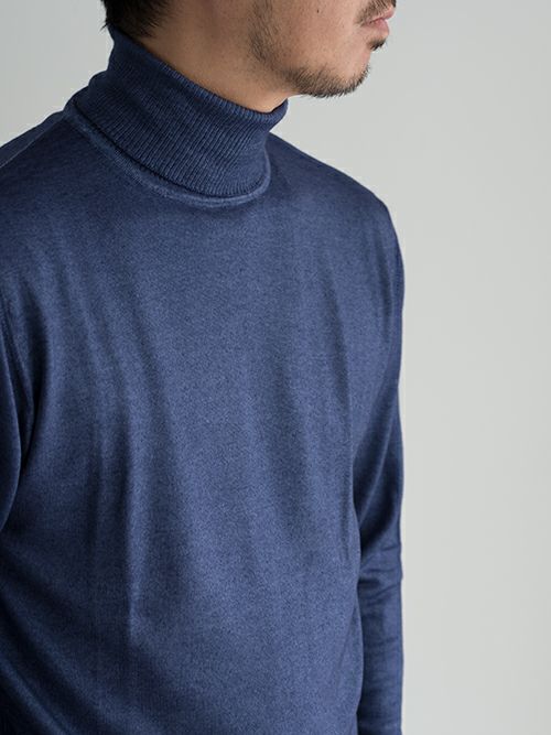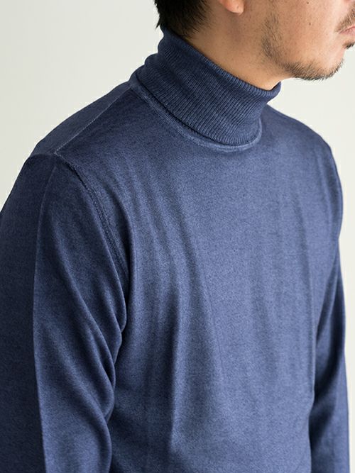 ウール100%の製品染めタートルネックニット。