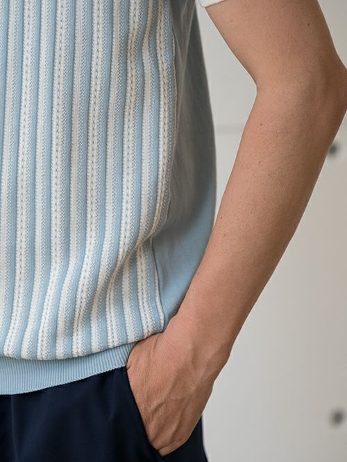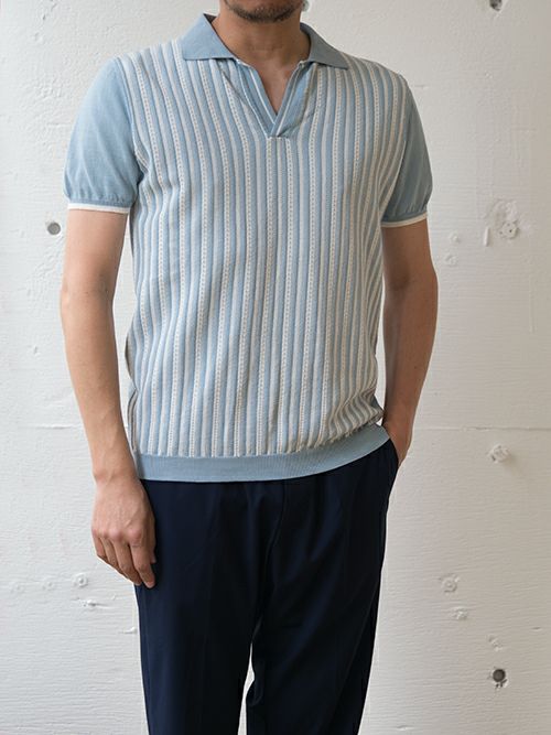レギュラーフィットの12Gスキッパーニット。 こちらアイスコットンの綿100%の糸を使用しています。