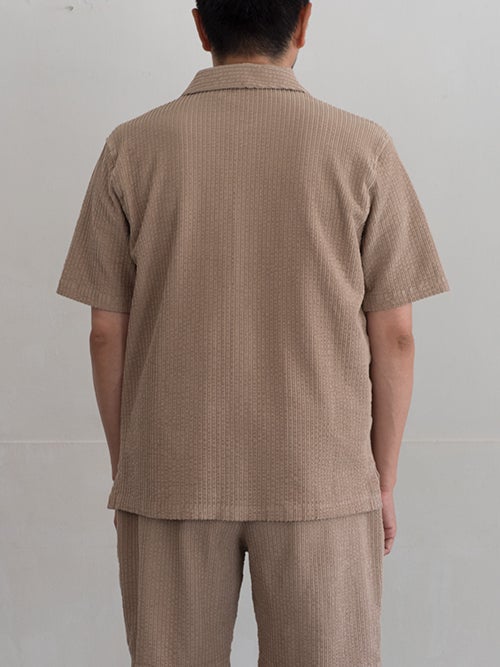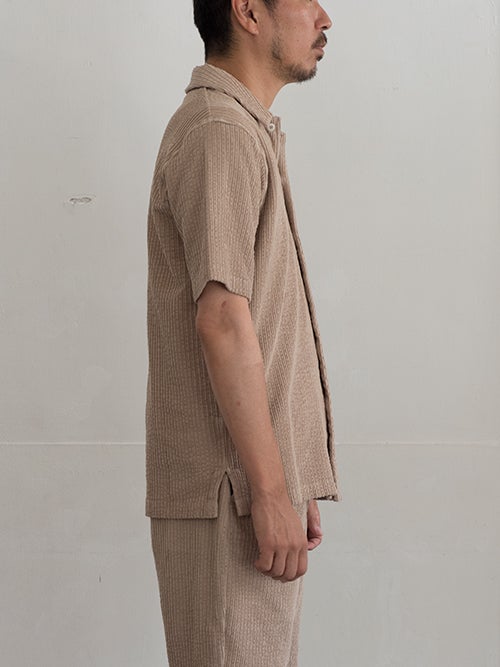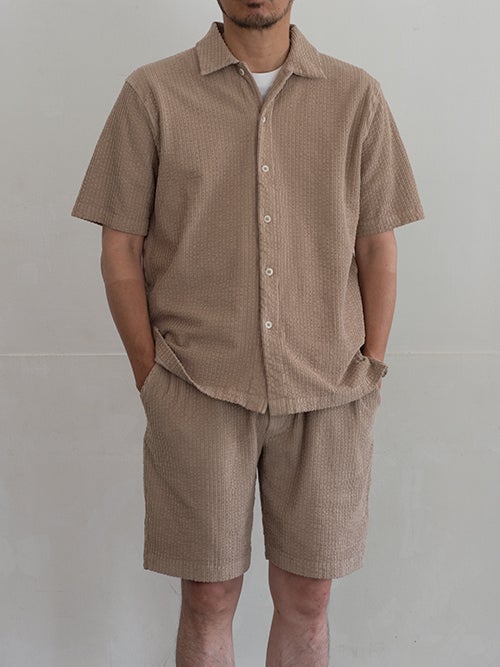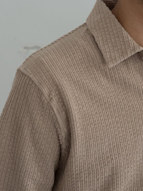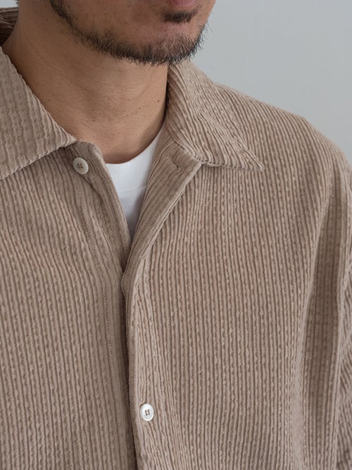 コットンストレッチ、コーデュロイ風の半袖シャツジャケット。