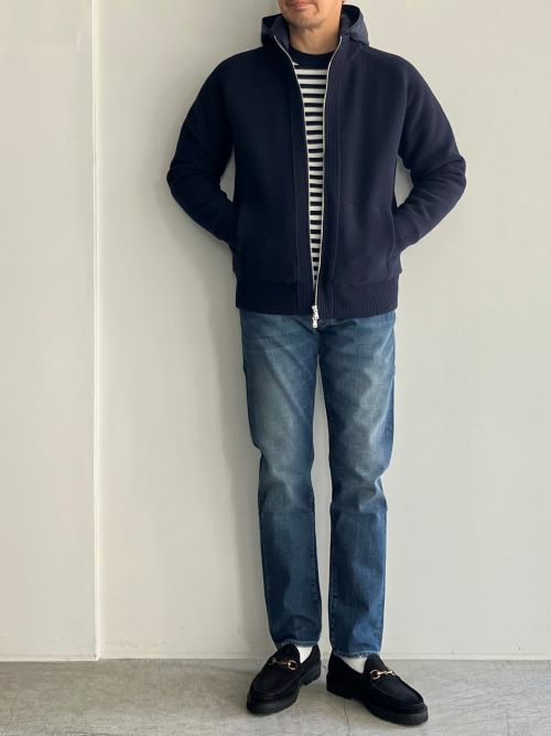 腰回りにゆとりを持たせた自然なテーパードラインで、イタリアのデニムには珍しいタイト過ぎないシルエットが新鮮なデニムです。