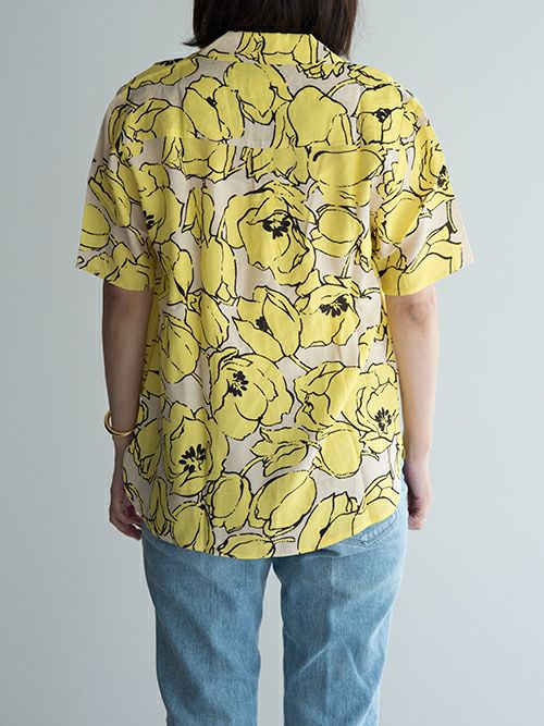 シルエットはボックス型で一見メンズライクな印象もありますが胸元のVラインは深めな開き感とレーヨン素材が、さらりとそよぐようなシルエットが女性らしさを表現ししてくれます。