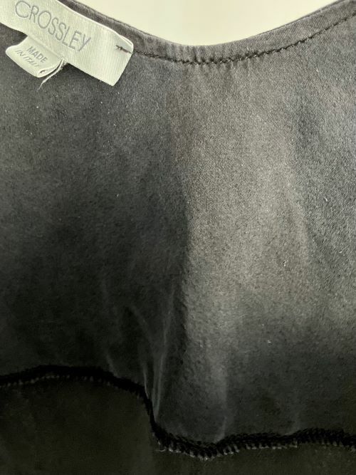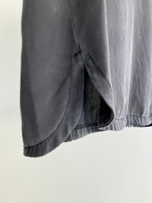 シルク素材にポリウレタンが入ることで、繊細な着心地の良さに伸縮性がプラスされるのでより着用しやすく、お手入れもしやすいです。細かな繊維方向でカラーのニュアンスに変化があるのもポイントです。カットソーなどに重ね着していただいたり、カーディガン下のインナーにも最適です。