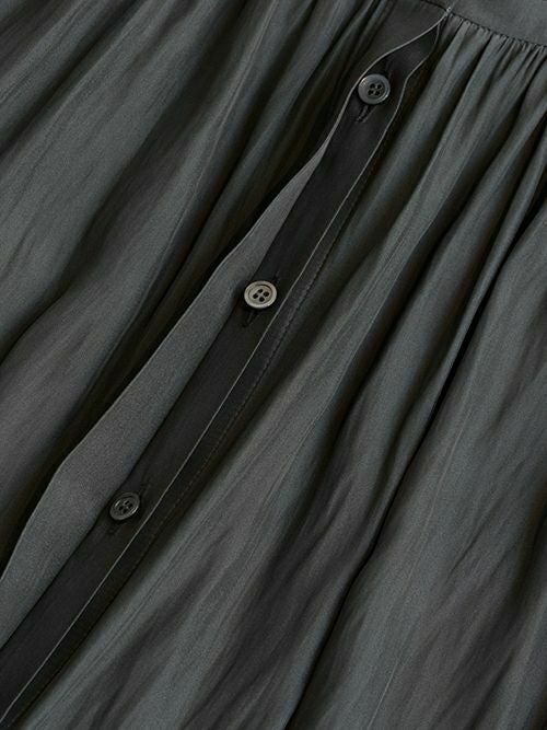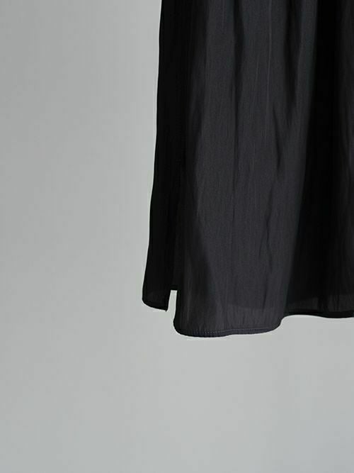 マットな質感のギャザーたっぷりサテン地ブラウス。エレガントなドレープ感と、動きのあるフォルムが特徴です。