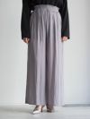 軽やかで上品なマットサテンのワイドパンツ。シャーリングゴム仕様でウエストにフィットしてくれるため、非常に動き易くストレスフリーな履き心地です。