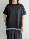 シンプルながらも立体感の出るドッキングリブがアクセントとなり、一枚でコーディネートの主役になるトップスです。やや短めの袖丈ながら、肩幅にゆとりを持たせることで、程よい長さの半袖シルエットに仕上げました。ネックはシンプルなカットソーでアクセサリースカーフなどパッと明るく見せてくれるのも嬉しいポイントです。