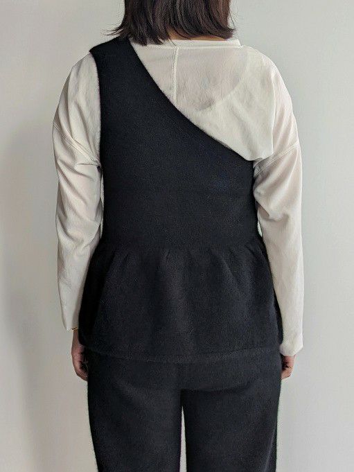 軽さと保温性に優れ、柔らかいタッチのチャイニーズラクーン混素材を使用。今季は定番のパンツに加え、重ね着スタイルに抜け感を演出するワンショルダーベストがリリースされました。季節の変わり目からコートのインナーまで長い期間使えるアイテムです。
