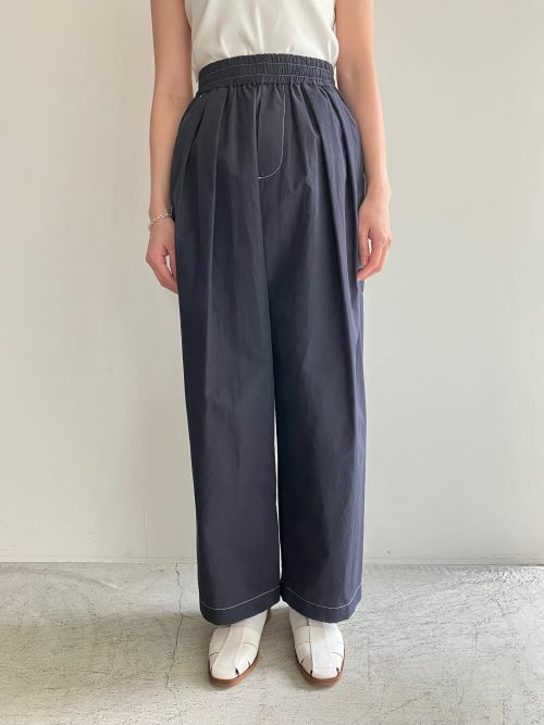 2タックのワイドパンツをイージーに仕上げた一枚。裾に向けてすとんとストレートに落とした美しいシルエットが魅力です。ウエストはゴム