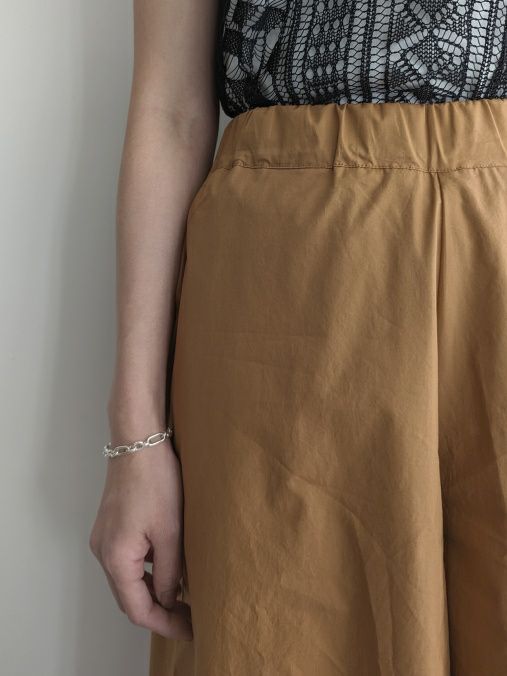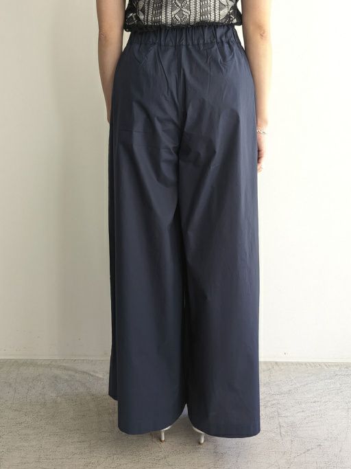 軽やかでフレアスカートのような広がりが女性らしいワイドパンツ。上質なコットンを使用しているので肌当たりも柔らかで、ウエストはゴム仕様で余計なものがなく、洗練されたシンプルなデザインです。ロベルトコリーナのニットとも相性抜群です。