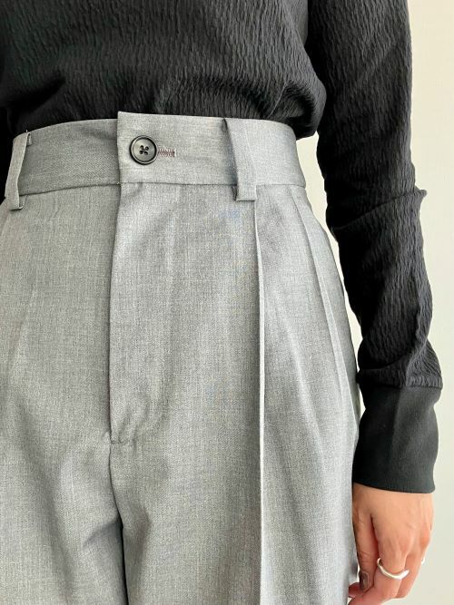 ダブルプリーツウール混パンツ。