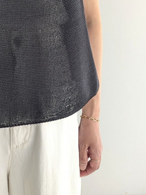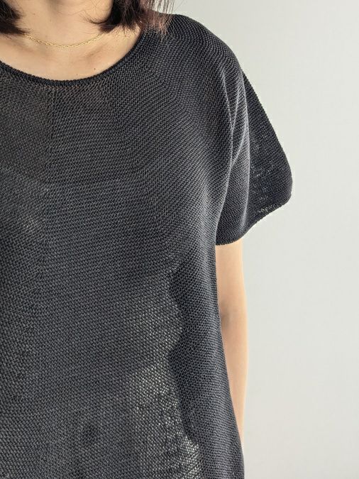和紙素材混紡のシャリ感のある爽やかな風合いと、裾に向かって広がるフレアシルエットが美しく、ホールガーメントで肌あたりがよく軽やかに揺れるデザインはこれからの季節にもぴったりです。