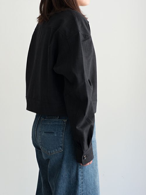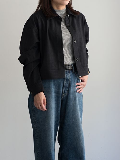 トラッドなドレス生地を使用した、メンズライクなショートブルゾン。