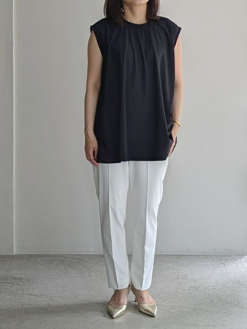 ゲイグリー ストライプ柄リネンノースリーブブラウス GRAY.S
