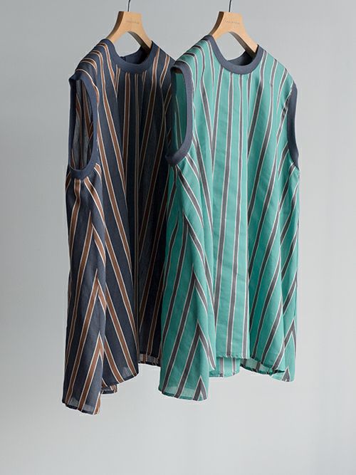 ゲイグリーストライプ柄ノースリーブブラウス 【全2色】