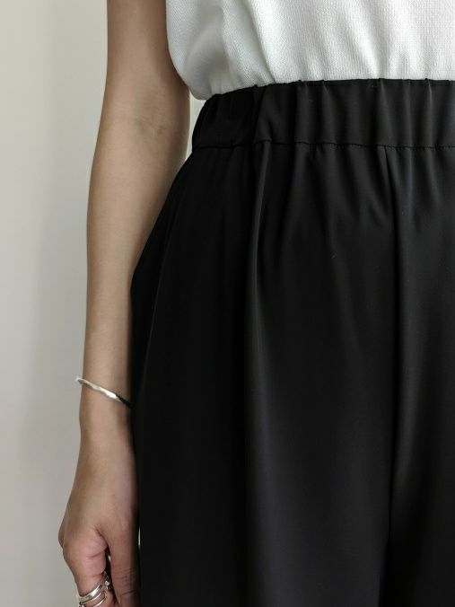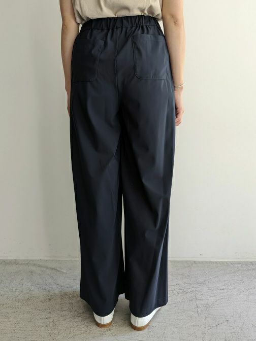 ウエストが総ゴムなのもストレスフリーで嬉しいポイント。後ろ側ヒップにはパッチポケットで表情を加えており、見えてもオフすぎない印象に。オンオフ問わずデイリーに活躍いただける毎日履きたくなるパンツです。生地はイタリアのセンシティブ ファブリックを使用しています。