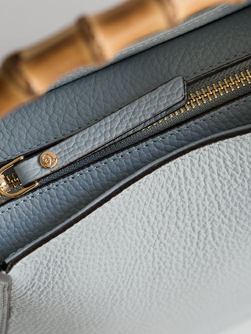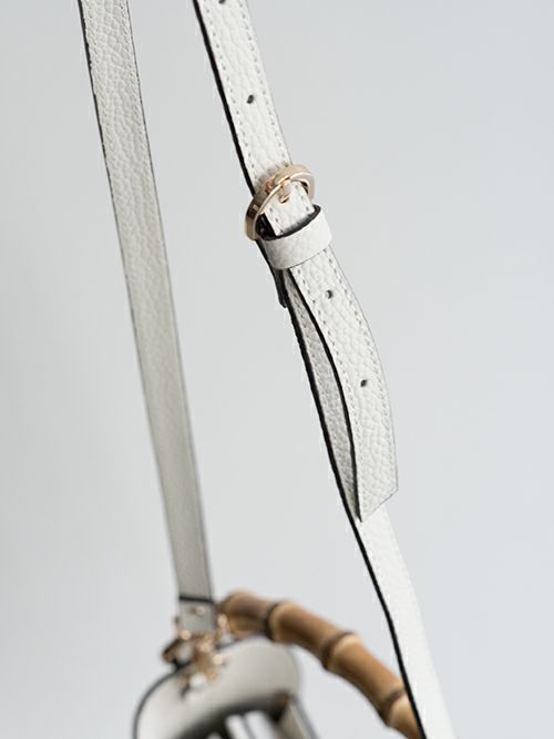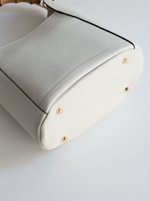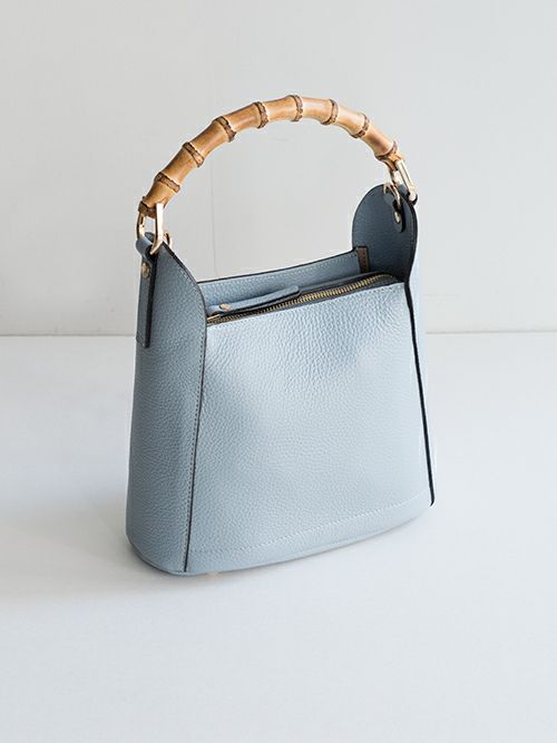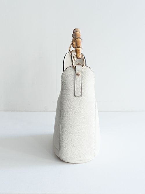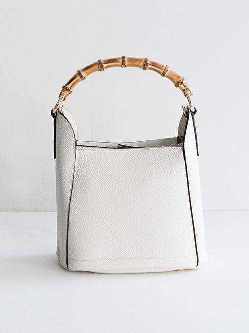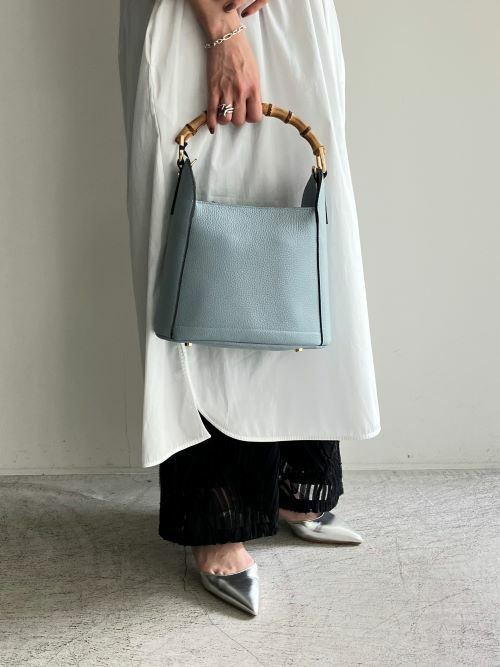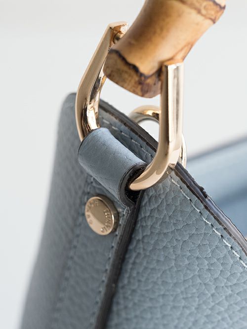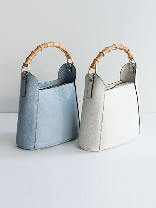 まるで飾りたくなるインテリアの様なフォルムが愛らしく高級感あるバンブーハンドルで品の良い印象になります。ショルダー付きでオンオフどちらもご使用しやすいです。