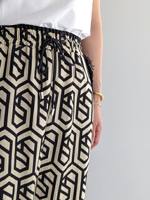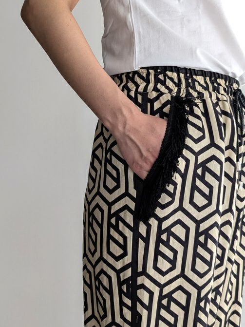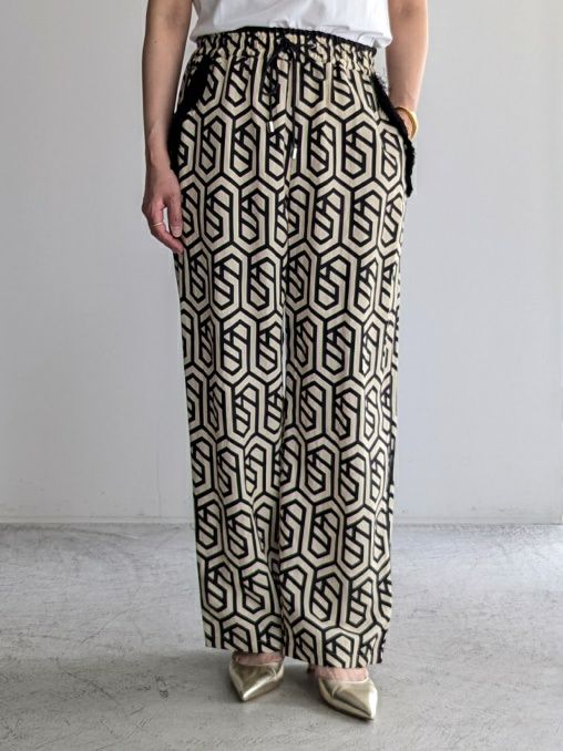 躍動感のあるフリンジでエッジがきいたデザインでシンプルなコーディネートも華やかな印象に。ウエストはオールゴムでらくちんながらもきちんと見えする美シルエットです。ゆったりとリラックスできる着用感が魅力です。