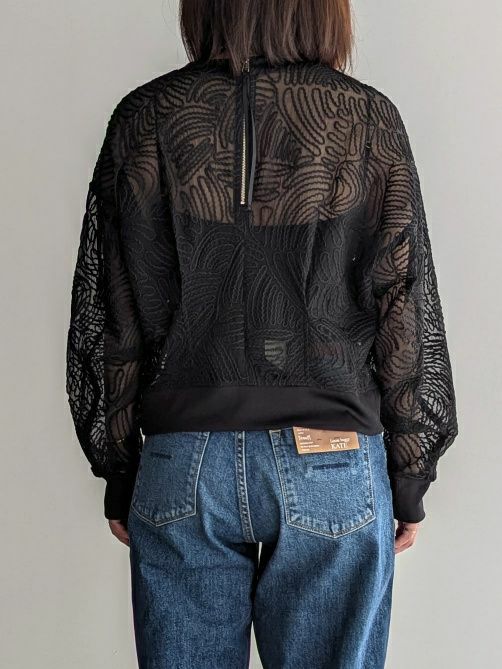 繊細な刺繍レースが目を惹く、上品でフェミニンなプルオーバー。軽やかな透け感がが程よい肌見せを叶え、女性らしいエレガンスを演出してくれます。リグ仕様の袖口は、腕まわりに程よくフィットし、快適な着心地に。カジュアルなデイリールックやキレイ目にスタイルにもマッチします。インナーとの重ね着や、アクセサリーのコーディーネートでさまざまな表情を楽しめる万能アイテムです。