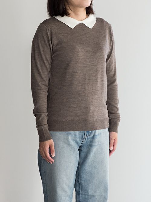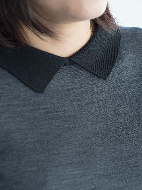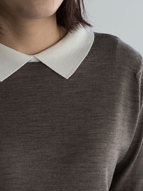 細かなサイズ感を調整し、よりモダンな雰囲気で、美しく着用しやすい形にアップデ―トしました。特徴的な襟はやや大きめにすることで、1枚着でのアクセントに。年齢を問わず、幅広いお客様に愛されているアイテムです。