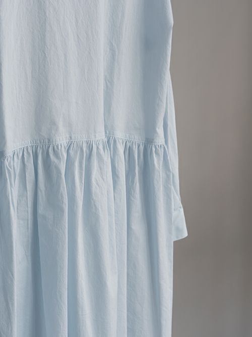 コットンのナチュラルな風合いをそのままに、自然なシワ感が特徴のソフトワッシャー加工を施したブラウス。腰回りの切り替えギャザープリーツが女性らしく、とても柔らかみのある仕上がりです。フロントは比翼となっており、ボタンが見えないことで、スッキリと清潔感のある印象を与えてくれる一着です。