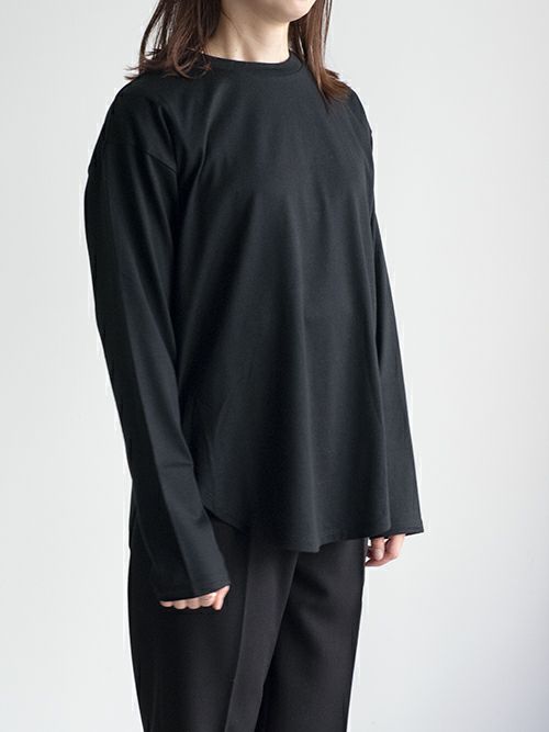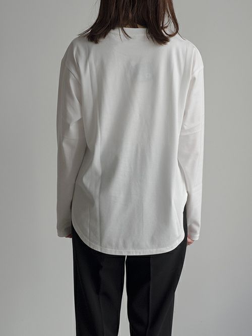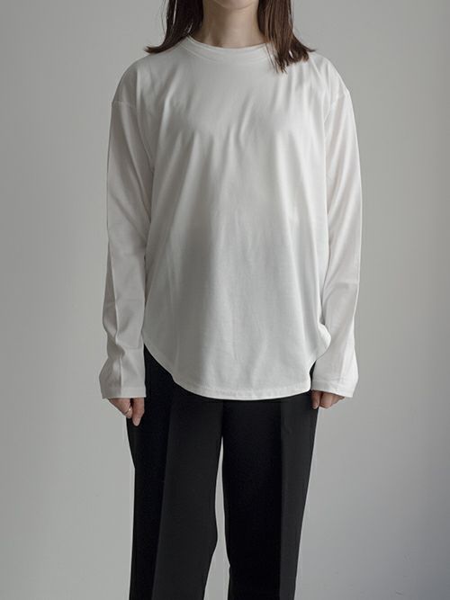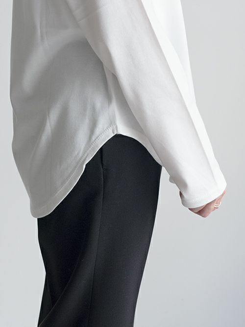 しっかりと厚みがあるので、一枚でも、インナー使いにも活躍するアイテムです。程よくゆとりがあり、体のラインを拾わず、リラックス感のあるシルエットになっています。