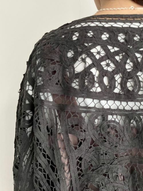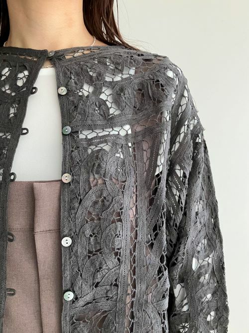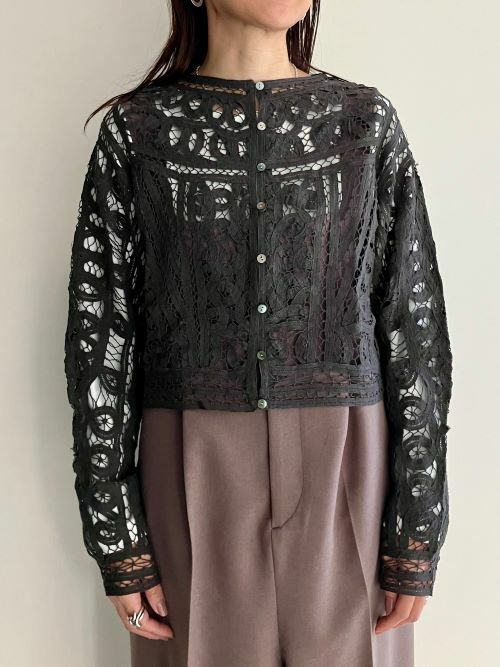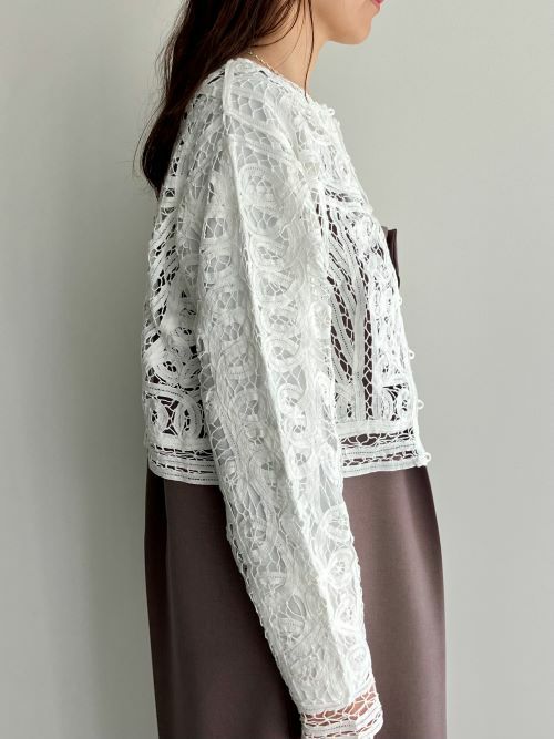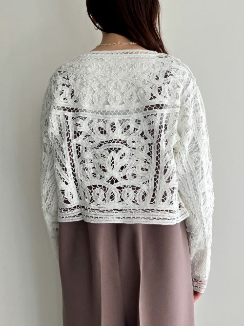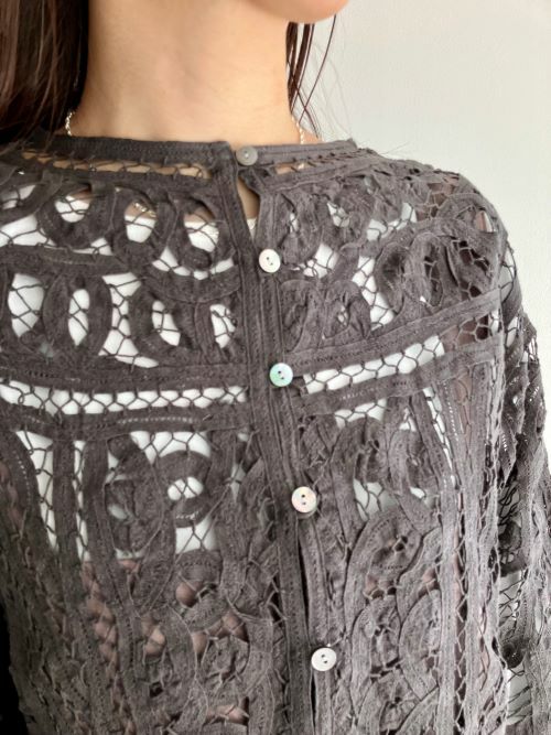 肌なじみのいいコットン素材を使用したブラウス。大き目のレースが特徴的で、上品な女性らしさを感じる仕上がりです。