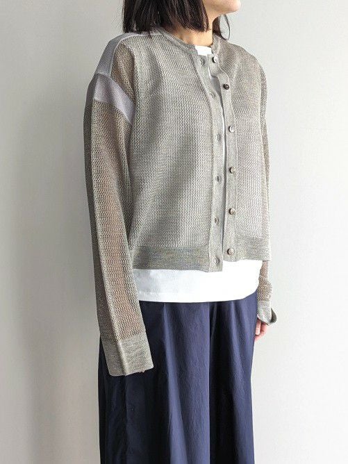 メッシュ編みニットカーデ